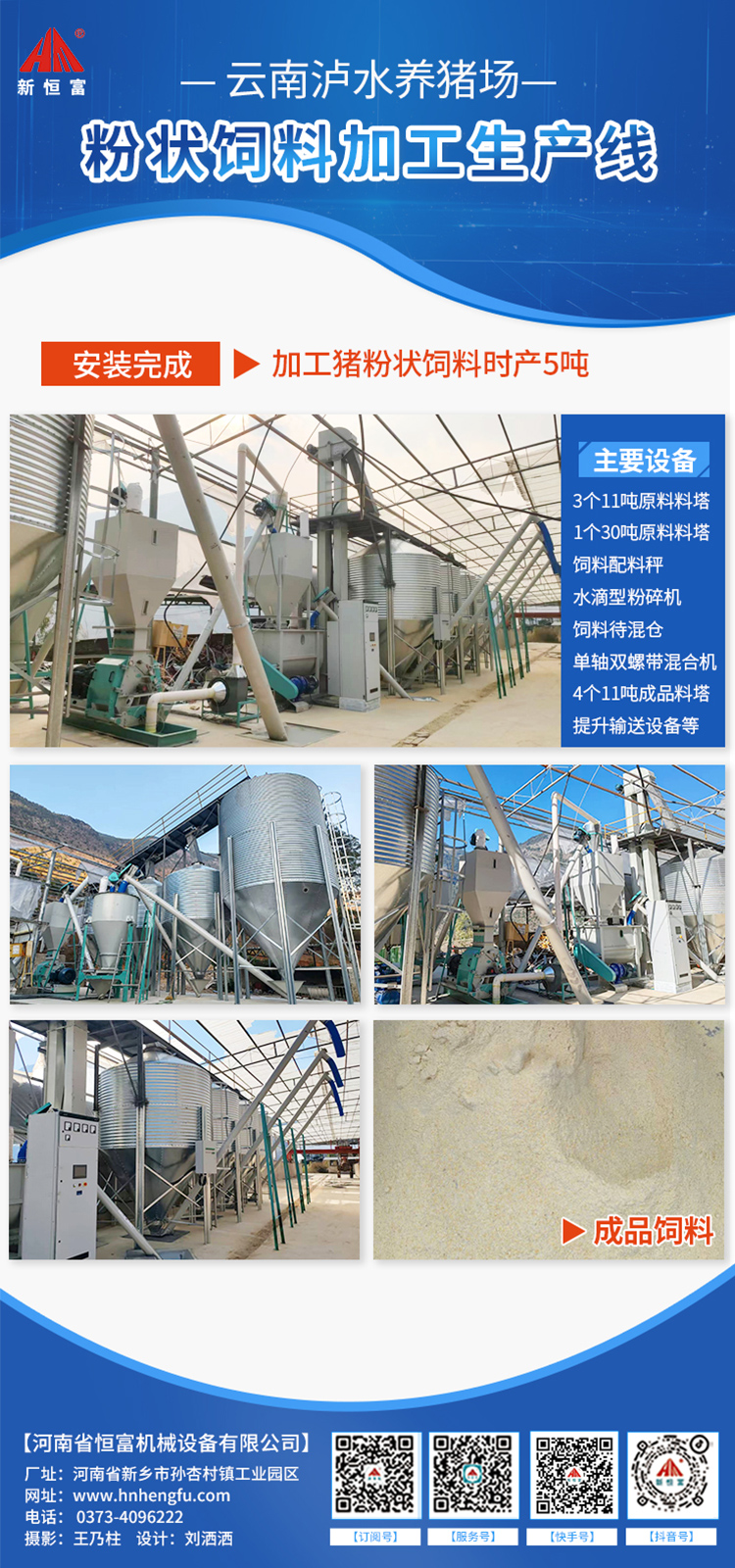 雲(yún)南瀘水種豬擴繁基地,時產5噸左(zuǒ)右粉狀飼料加工生產線安裝完成。