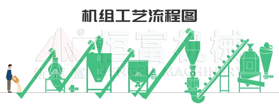 該機組主要設備包含:水滴式(shì)飼料(liào)粉碎機、緩衝倉、單軸雙螺旋飼(sì)料混合機、環模(mó)飼(sì)料顆粒機、逆流冷卻器以及(jí)各種輸送設備和(hé)除(chú)塵設(shè)備。