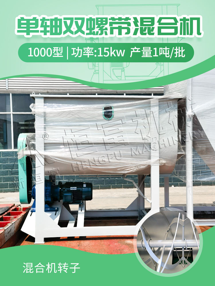 內外四條螺帶,物料(liào)不會集中在某(mǒu)一區域,而是在混合室內形成多維度、大範(fàn)圍的對流與擴散。
