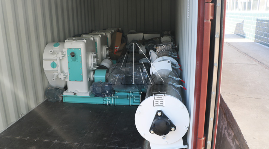 本次發貨的主要設(shè)備有:7根(gēn)螺旋提升機、4台(tái)350環模顆粒機、50*40粉碎機、4組不鏽鋼喂料器和調製器、碳(tàn)鋼沙克龍、關風器、緩衝鬥等。