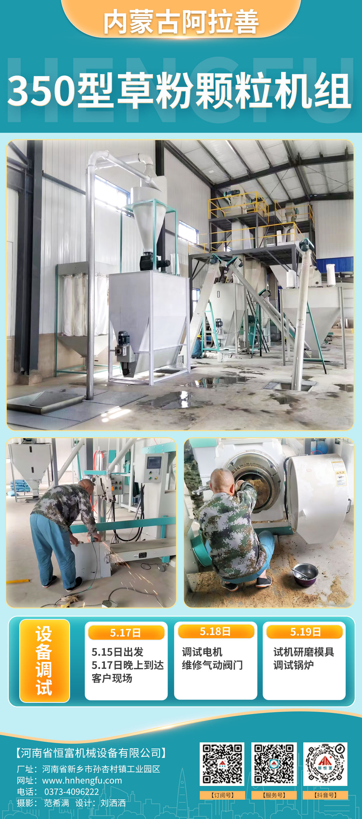 進行調試的設備:內蒙古阿拉(lā)善350草粉顆粒機組。