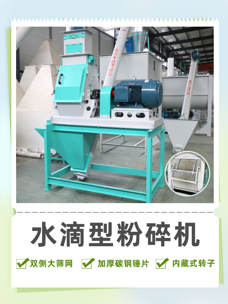 水(shuǐ)滴式粉(fěn)碎機:SFSP56*40型,功率37kw,水滴形狀(zhuàng)粉碎室結構,底層U型結(jié)構(gòu)設計,有效減少環流,提高粉碎效率。可粉碎小麥、玉米、高粱、穀物、豆粕、麩皮等,是一款精(jīng)料粉碎專用高效粉碎機。