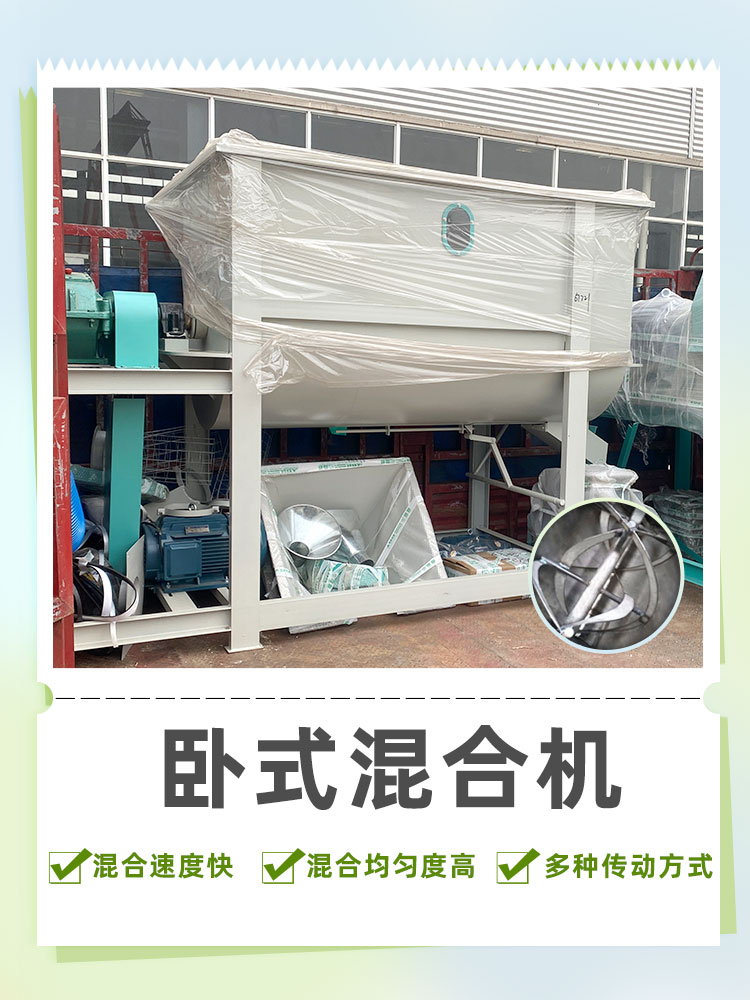 單軸雙螺旋混合機:9HWP1000型,功率15kw,混合均勻度較高,cv≤7%,它主要由機體、轉子、混合室、傳動部分和控製部分等組成。轉子采用主軸帶動雙層環帶狀螺旋葉片(piàn)的設計,與混合室底部間隙的很小,可以充分攪拌物料(liào),提高混合效率。本係列混(hún)合機有多(duō)個型號多種規格(gé),可以滿足不同飼料養殖場廠的生產需求。