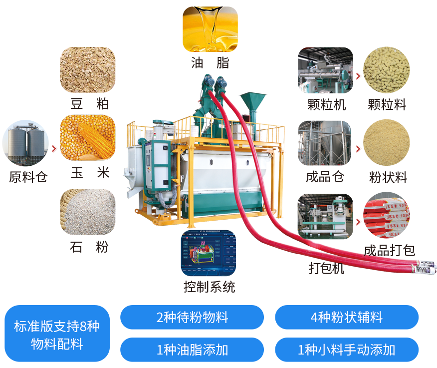 結構新穎,實用,性能優良,可滿足各種禽畜各種階段的營養需(xū)求。