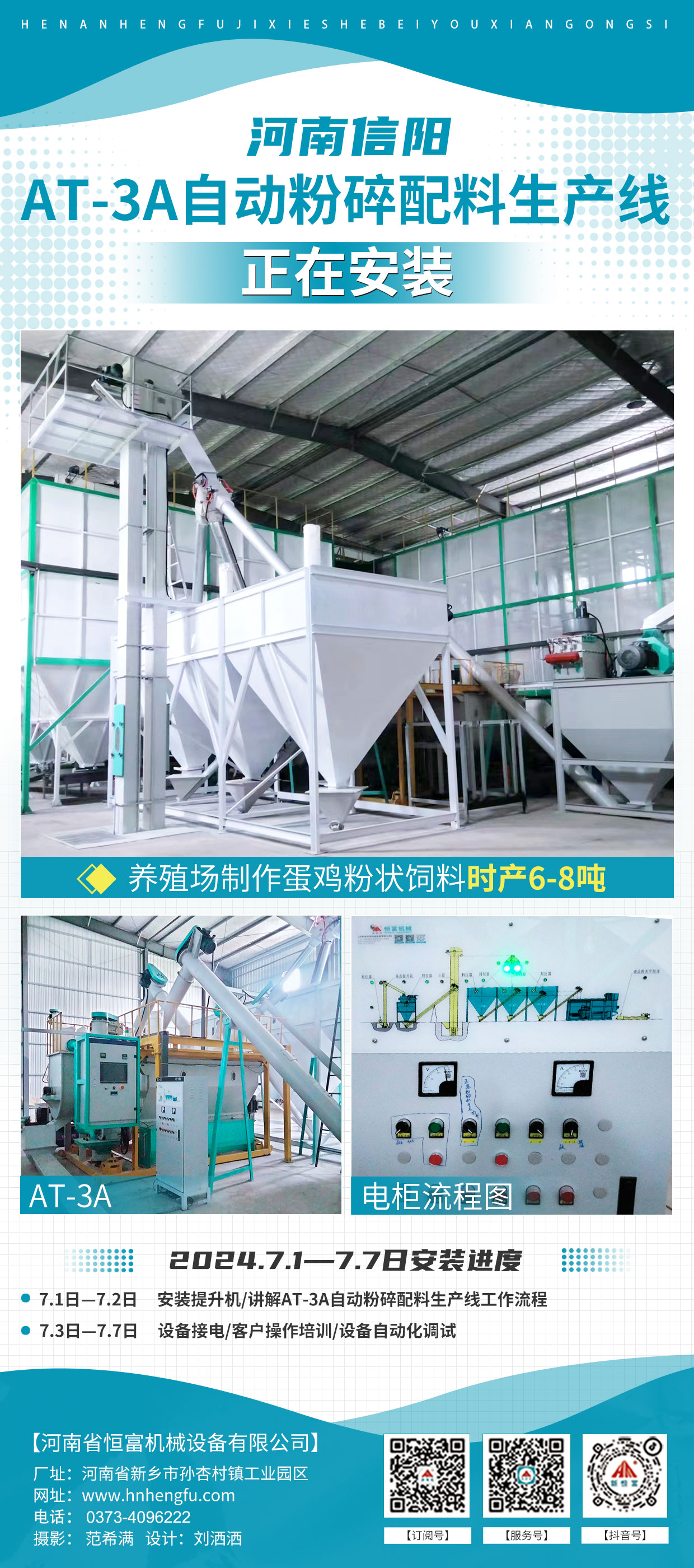 正在安裝的設備:河南信(xìn)陽AT-3A自動粉碎配料生(shēng)產線。