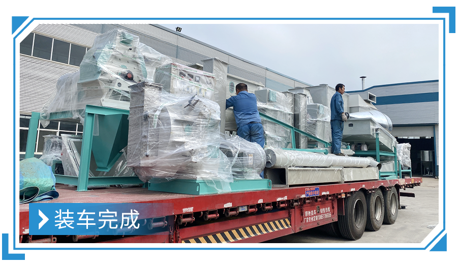 廣東汕尾--時產3-5噸粉狀飼料加工機(jī)組,現已裝車完成,順利發走!