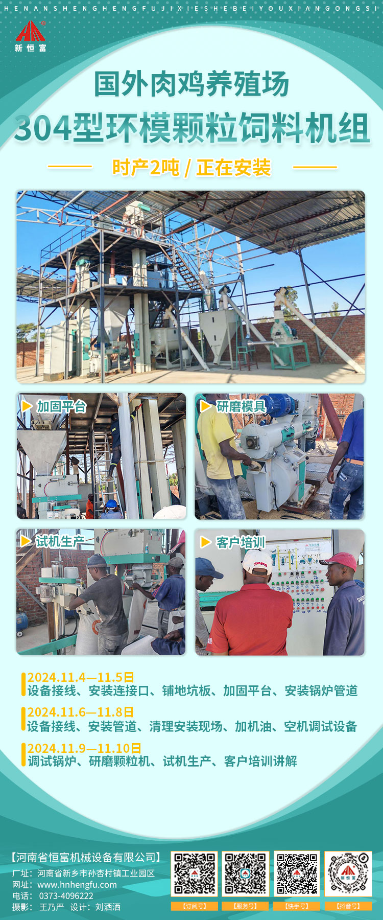 河南恒(héng)富機(jī)械-成套飼料加工設備安裝進度【2024-10-08】