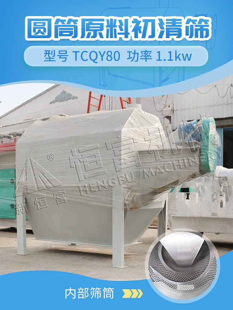圓筒原料初清篩廣泛(fàn)用於麵粉廠、飼料加工廠及其他行業的物料篩分。對粒狀(zhuàng)原料中大(dà)雜的初清,如:稻草、麥秸、麻繩、紙片、土塊(kuài)、石子、石塊、玉米芯等雜質。