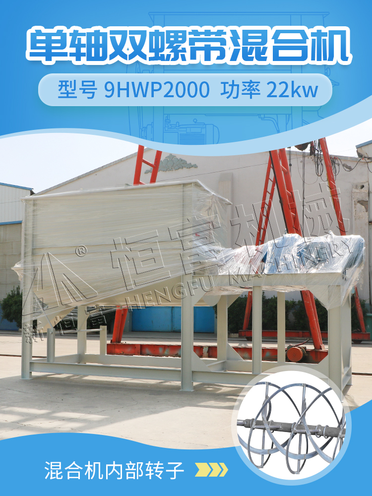 混合均(jun1)勻度高CV≤7%、混合時間短3-6分鍾。用於混合按比例計量後的各種粉料,預混料和全價料。