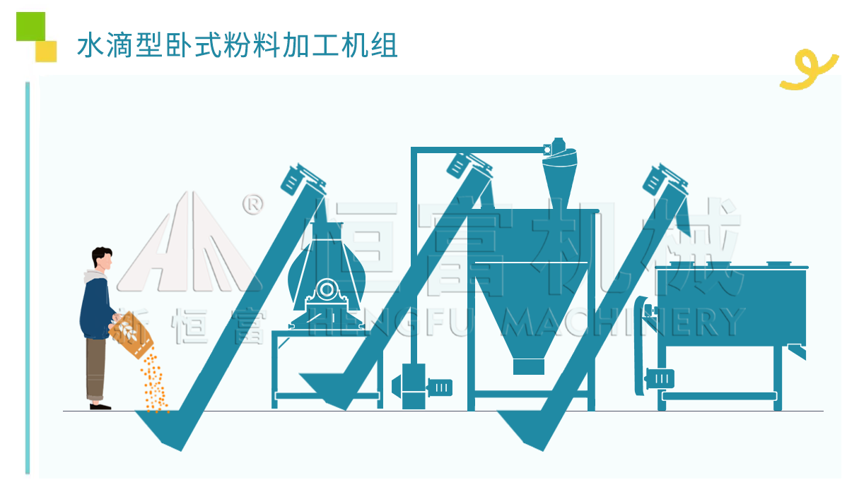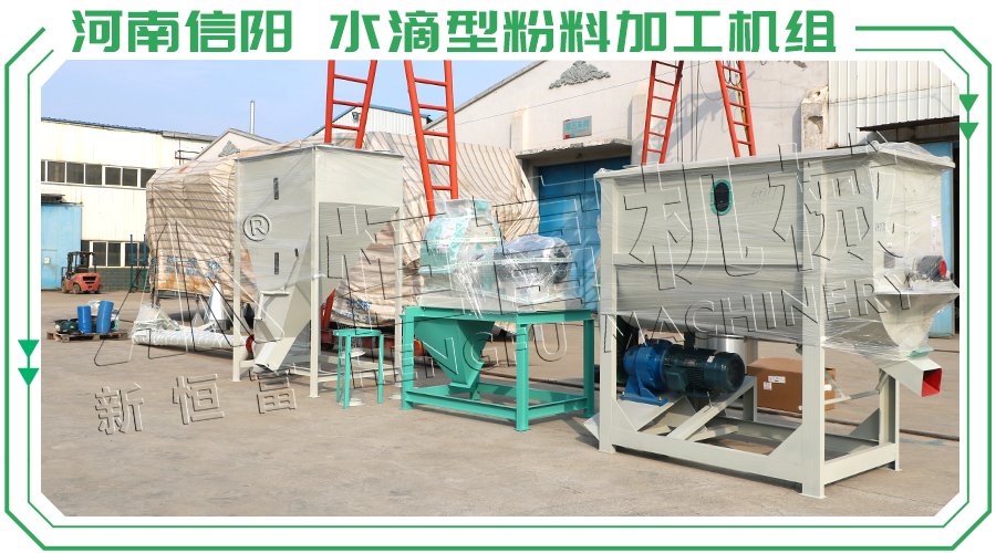 該機組搭配(pèi)的設備有(yǒu)水滴式飼料(liào)粉碎機、臥式螺帶(dài)飼料混合機、中間(jiān)配有獨立(lì)緩衝倉。可(kě)以(yǐ)使飼料粉碎機和飼料混合機始終處於一個連續(xù)高效工作的狀態,進一步(bù)提高生產效率(lǜ)。