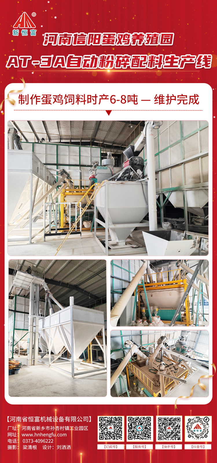 河南信陽蛋雞養殖(zhí)園,時產6-8噸(dūn)自動粉碎配料生產線維護完成(chéng)。