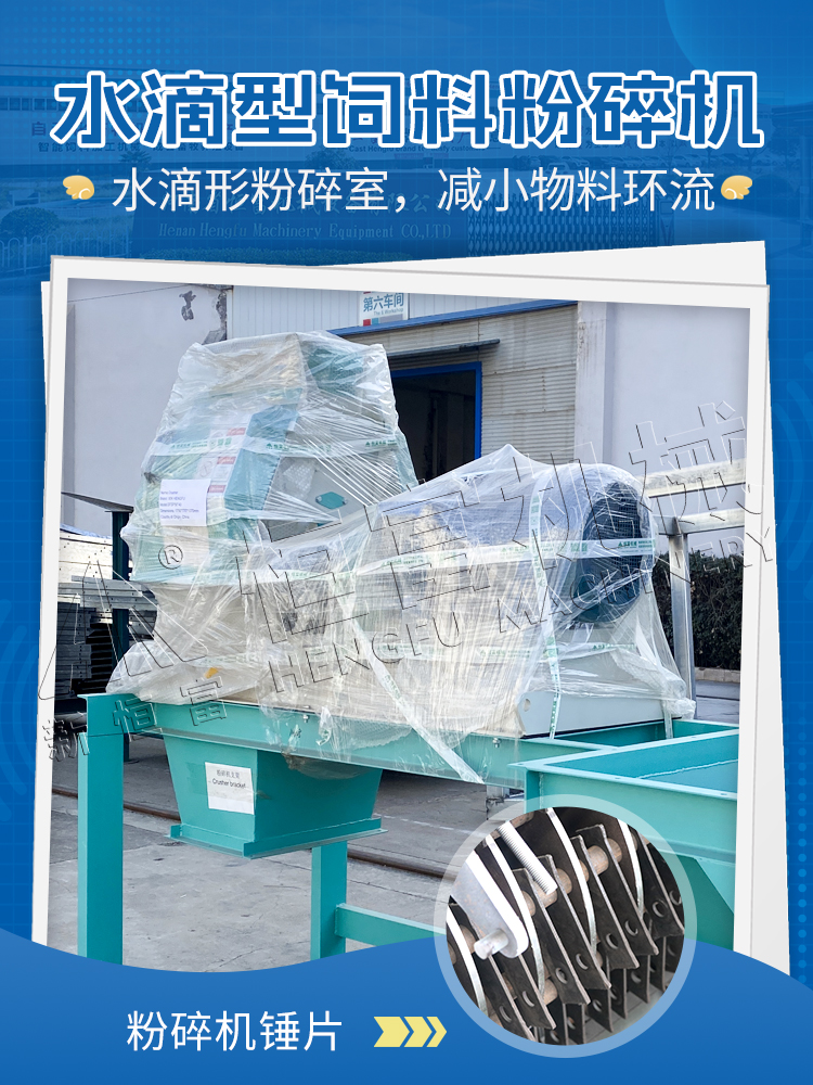 水滴型飼料粉(fěn)碎機主要(yào)用於養殖場、飼料加工廠(chǎng)粉碎玉米、小麥、高粱等精糧類原料。