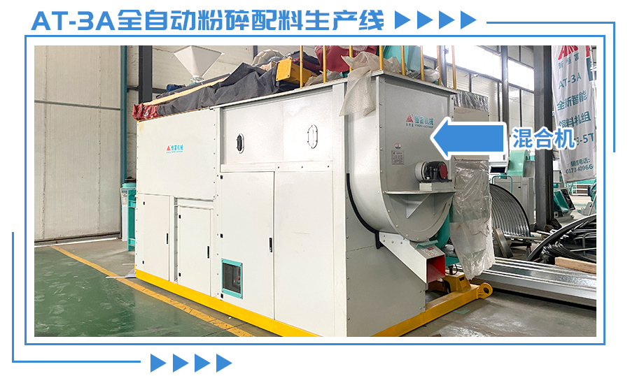根據客戶需求,我們(men)向其(qí)推薦了我公(gōng)司自主(zhǔ)研發生產的AT-3A全(quán)自動粉碎配料機組,是一款(kuǎn)集上料、粉(fěn)碎、稱重、注(zhù)油(yóu)、混合、放料等多個工序於一體的綜合性設備。