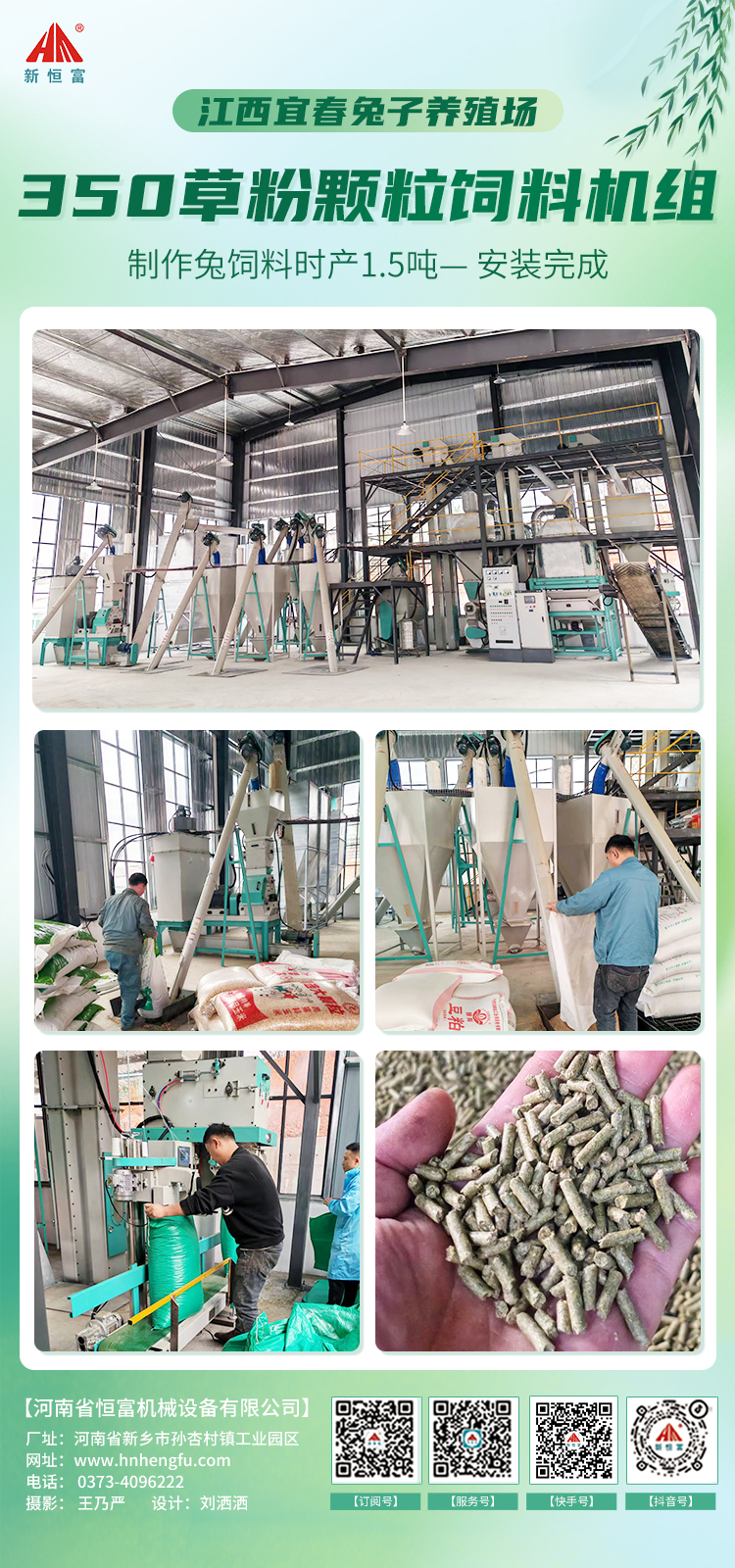 江西宜(yí)春兔子養殖場,時產1.5噸(dūn)草粉顆粒飼料加工機組安裝完成。