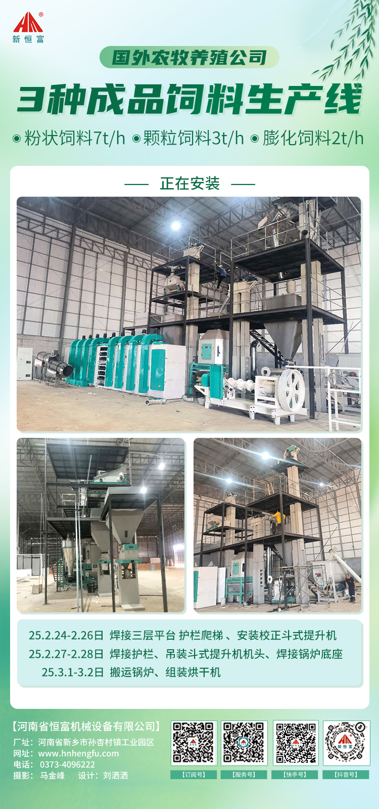 國外農牧養(yǎng)殖(zhí)公司,時產(chǎn)2-7噸3種成品飼料生(shēng)產線(xiàn)正在安裝。