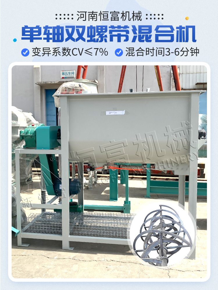 單軸雙螺旋混合機混合(hé)物料時具有高速,高效的特點,物料在螺旋攪拌軸的帶動下,使得物料快速的(de)翻滾。