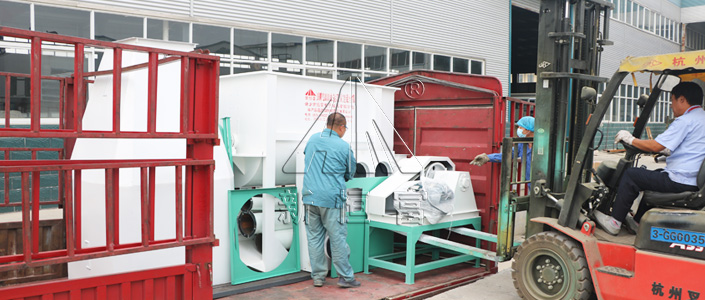本(běn)次發貨的主要設備有:多功能粉碎機,沙克龍,250環模顆粒(lì)機,脈衝除塵(chén)器,單(dān)軸雙(shuāng)螺旋混合機,關風機,螺旋提升機,料倉,沙克龍,配電櫃等,並根據(jù)客戶(hù)需求,配備了(le)6mm和8mm的模具(jù)各一件。