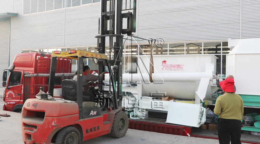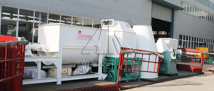本次發貨的主要設備有: 多功(gōng)能粉碎機、420環模顆粒機和配套喂料(liào)器、螺旋輸送機、配料秤、2噸臥式草粉混合機、4立方米料倉、鬥(dòu)式提(tí)升機、注水泵、逆流冷卻(què)器、沙克龍、掛篩、風機、配電櫃、自動打包機等(děng)。
