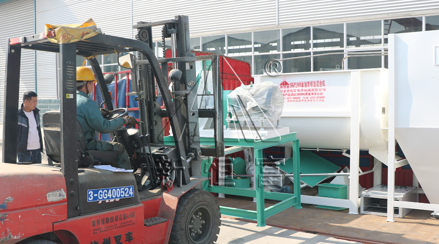 本次發貨(huò)的主要設備有:56*4水滴式粉(fěn)碎機及支架、待混合倉、螺旋輸送機、磁選器、單(dān)軸混合機、電(diàn)控櫃等。