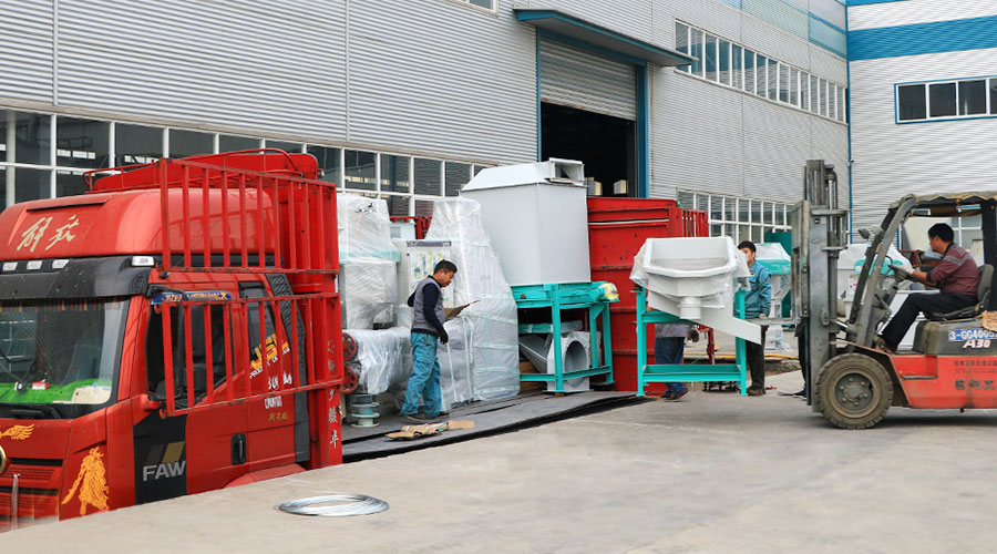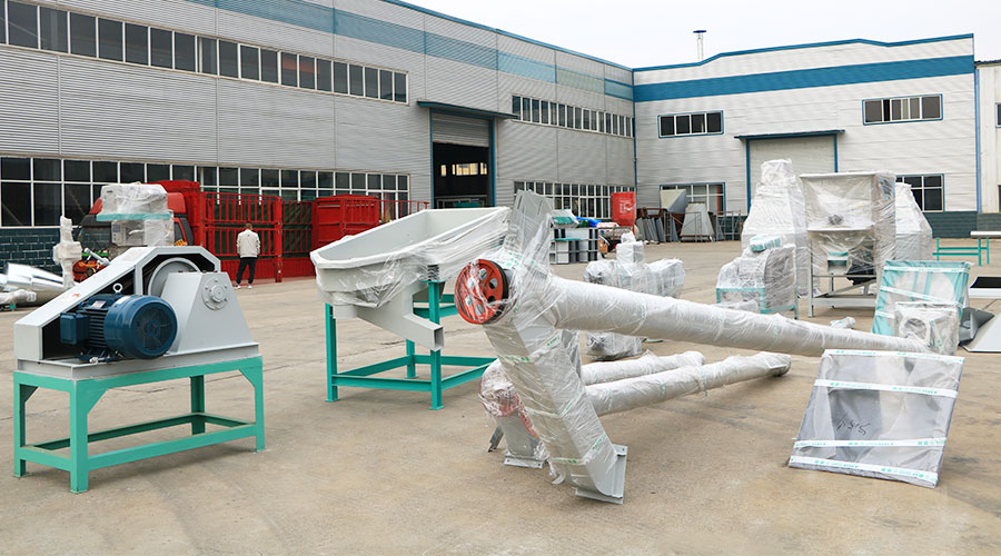 本(běn)次發貨的主要設備有:粉碎機、臥式雙螺帶攪拌機、雙層蒸汽調製器、250顆粒機、1.5方冷卻器、振動篩、打包機等一整條生產線設備。
